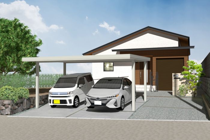 暮らしを彩る洗練デザイン、車と家が調和する外構とカーポート