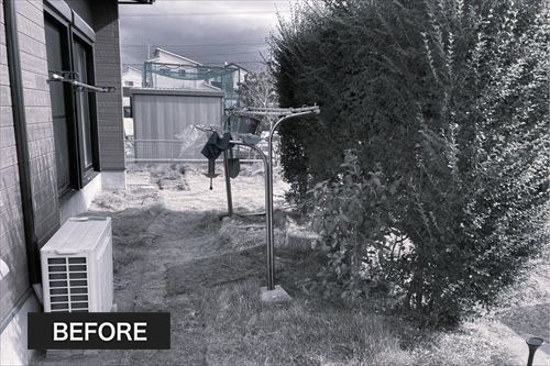 樹木は撤去してフェンスの目隠しへとリフォームしました。