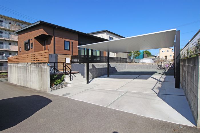 カーポートは『三協アルミ:スカイリード』を梁延長仕様で設置します。運転席側の柱を車から離すことで車の乗り降りがしやすいよう考慮しました。