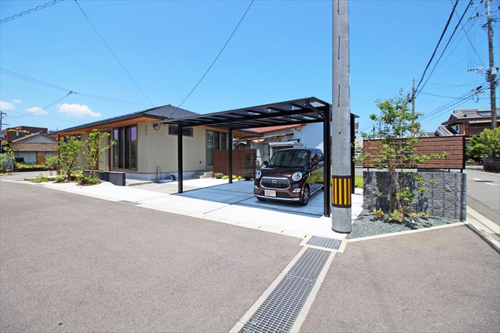 敷地が広いため車庫スペースの位置を悩まれましたが、道路際に3台分の駐車スペース、その後ろに広がるお庭スペースのアイストップとなるよう計画しました。