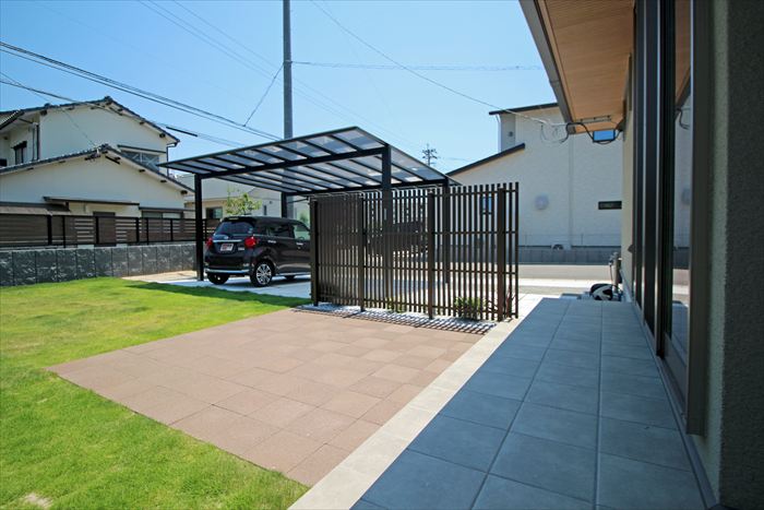 縦格子フェンスで仕切ったお庭はご家族の憩いの場となるガーデンフロアを設け、その先には天然芝が惜しみなく広がります。