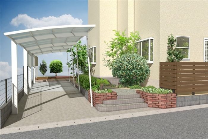 古くなっていたカーポートも撤去し、縦2連棟タイプを新設します。サイドパネルを取り付けることで、側面からの雨風の吹き込みを防ぎつつ目隠しとしても活躍します。
