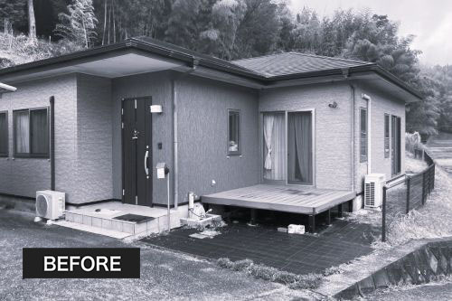 玄関横の入隅のスペースに『LIXIL:ガーデンルームGF』をご提案しました。 既存デッキを撤去し玄関ポーチを延長するようにタイルテラスを作ることで、玄関廻りを広く有効にお使い頂けます。