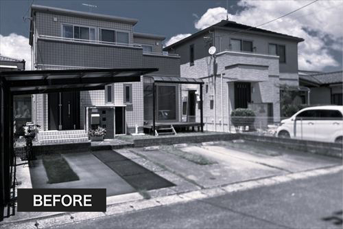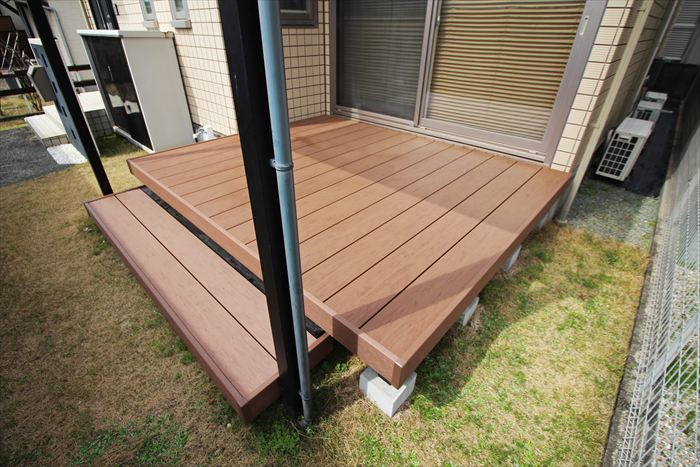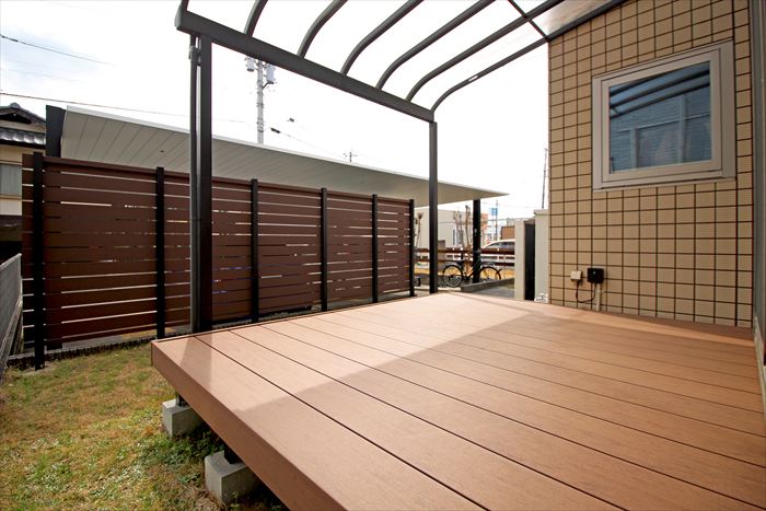 カーポートの裏手にはリビングから広がるウッドデッキがありましたが、天然木のデッキは劣化し傷んでしまいました。