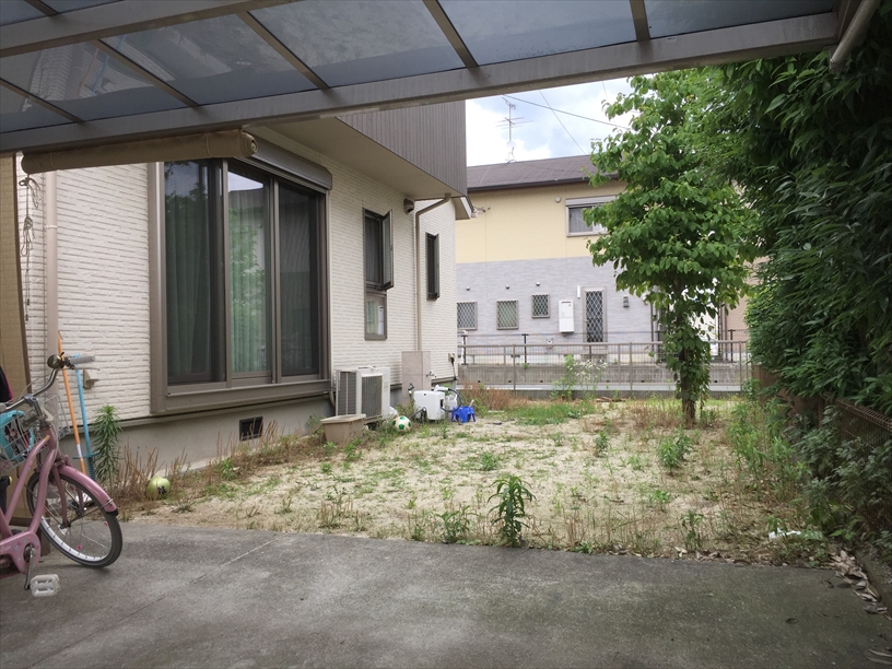 洗濯物干場も含めた、冬場でも芝生の鮮やかなお庭が完成致しました。