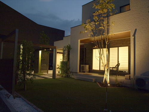 樹木の陰で車庫から門扉にかけて暗くなってしまう・・・という