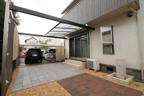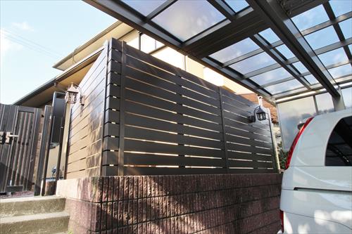 駐車場からの目隠しは樹脂フェンスを。明を随所に配し、以前に比べて