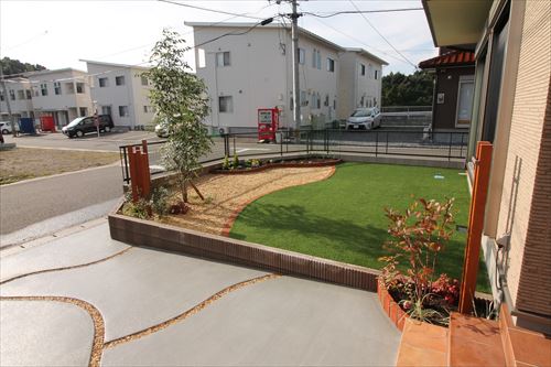 人工芝を敷き詰め、お手入れがいらないようにご提案。
