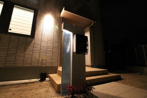 そして、門柱としてEXLIVE オリジナル レイバック ガラス(ティンクルⅡ)のモニュメントを表札として使用。