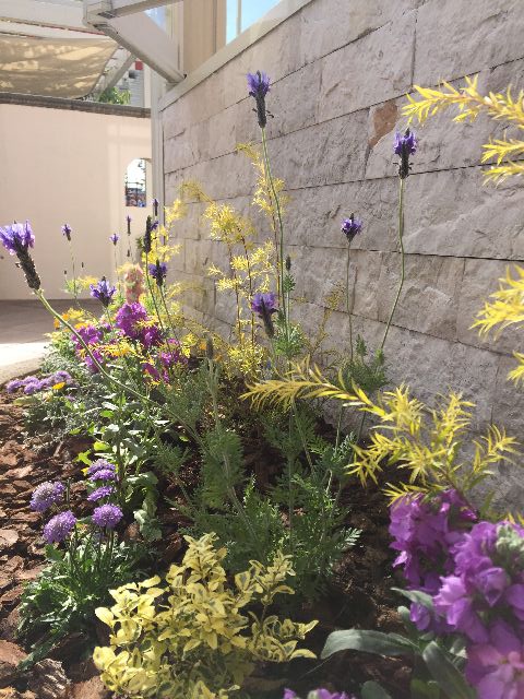 ↑暖かいガーデンルームで、大きくなった秋色の寄せ植えプランター