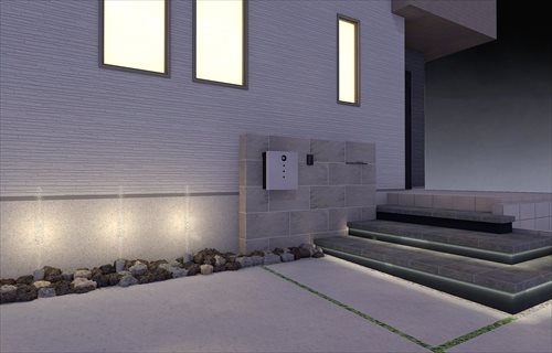 ↑広いお敷地なので、門柱は使い勝手が良い玄関横に配置しました。