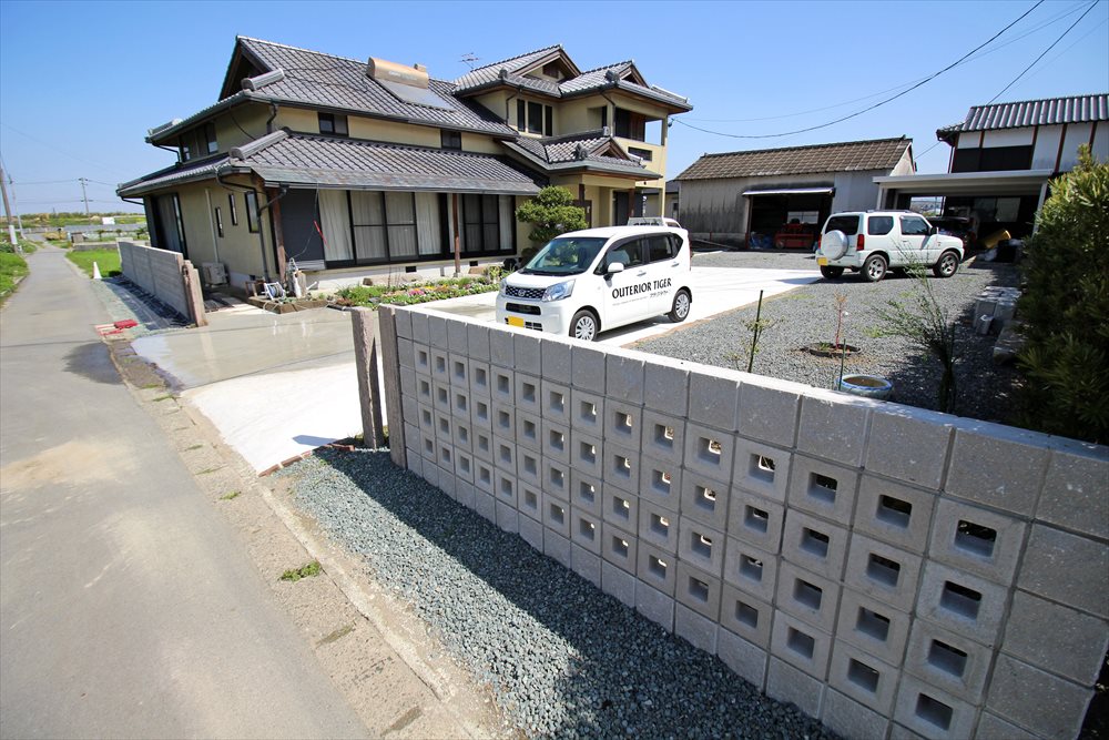 境界塀の工事をお世話になりました。自然石の風合いを湛えた化粧ブロックが優しく敷地を包みます。侵入口に建てたコンクリート製の枕木がアクセントとなり、新しく設置したガラスの表札が煌めきます。お土地に馴染む境界塀が完成しました。