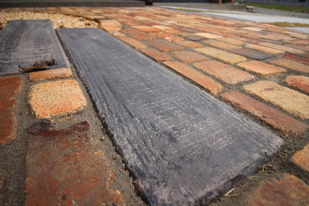 南欧風の可愛い建物に合わせた車庫スペースをご提案しました。隣接するご実家とを繋ぐアプローチや建物前の花壇には味わい深いクラシックレンガを使用し、境界部分には木製フェンスを設置。天然芝やシンボルツリーのオリーブの緑と合わせ、柔らかな雰囲気を演出しています。