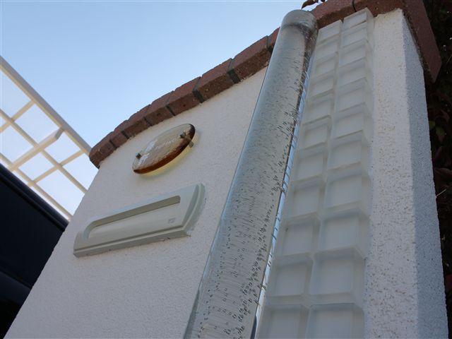 建物と合った外構にしたいとのご相談でした。全体的に白を基調とした建物でしたので、外構もそれに合わせ白を多くご提案いたしました。全体が白基調ですので、ガラス素材のインゴットや門柱上部のレンガ、植栽が引き立ちます。全体的にナチュラルな外構となりました。