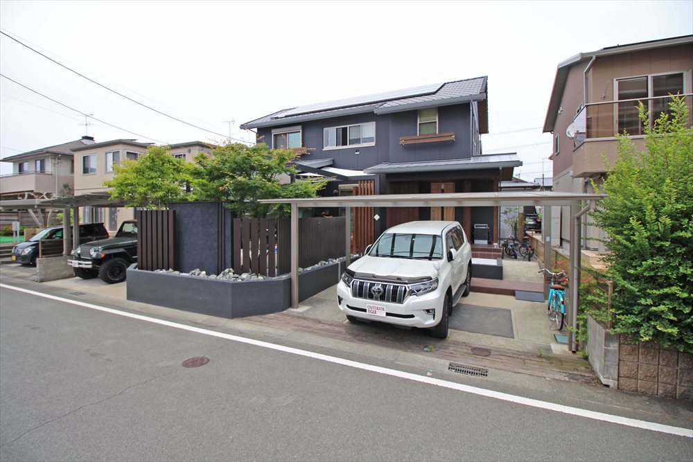 雰囲気の良い縦格子フェンスでお庭を囲っていましたが、よりしっかりした目隠しでプライベート感を充実させるため、塗り壁と木調のアルミ角柱で魅せる新たな目隠しウォールをご提案しました。 既存のテラス土間に合わせて建てたフレームには施主様がご準備されたシェードが取り付けられ、優しい影と木々の葉擦れの音が心地よい空間を演出します。
