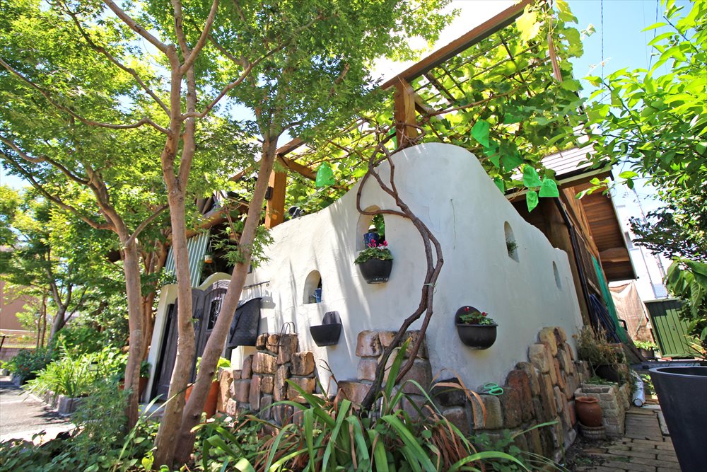 既存の天然木デッキが傷んでしまったため、タイルテラスへとリフォームされたK様。ウォールで囲まれたプライベート空間はお友達との団欒や癒しの場として大活躍です。テラス屋根を利用してブドウを栽培されており、今年、甘くておいしいシャインマスカットが見事に実りました。