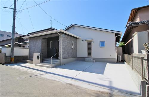 ファサードとお庭の2つの空間でプランニングを行ないました。門廻りは建物にマッチしたデザインで、コーナータイルをアクセントにご提案。黒いポストが門柱の主役となっています。お庭はお部屋から見える部分を植栽とカラー砂利で枯山水風にデザインし、奥には人工芝と花壇を組み合わせ、使い勝手を追求しました。
