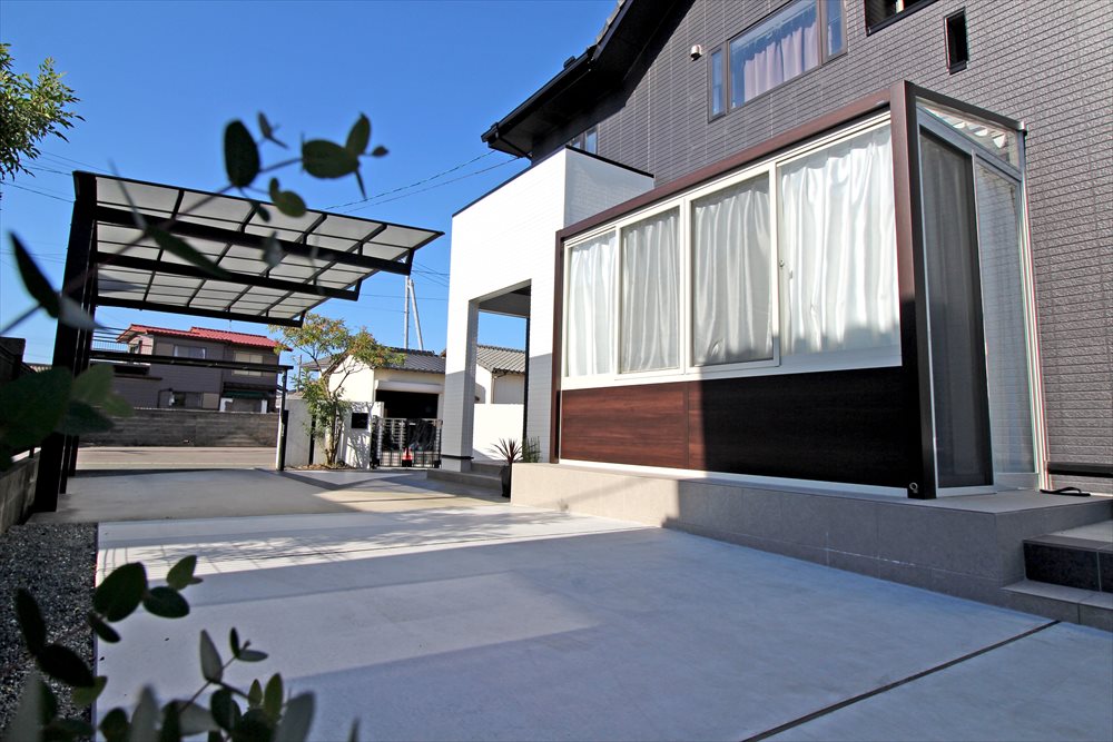 車庫スペースの奥に広がるお庭にガーデンルームを設置しました。選ばれたのは『LIXIL:ガーデンルームGF』です。外からの視線を遮る腰壁タイプのガーデンルームは1年を通して居 心地のよい空間となります。お庭はコンクリートで仕上げてカーポート1台分も新たに設置し、お子様の遊びのスペースとして駐車スペースとして…多目的にご利用頂けます。