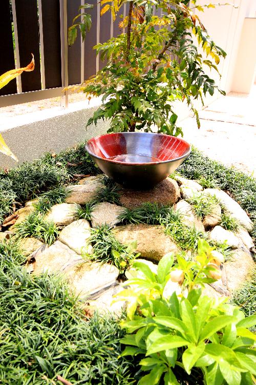 こだわりの和室から眺める『和モダン』なホーカルポイントをご提案!!木目調のアルミフェンスが全体を引き締め植栽と水鉢・庭灯が落ち着いた風情を演出してくれています。