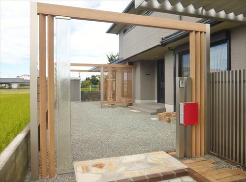 ご自宅の二世帯住宅への改修に伴い、お庭も一新することに。お庭全体を樹脂フェンス”Eウッドスタイル”で囲んで目隠しをし、息子さんご夫婦のお庭にはガーデンルーム”ハピーナ”を設置。ご両親のお庭には”+G”のフレームやパネルでアクセントを加えました。土間部分は、これから少しずつご主人さまが作り上げていかれるそうです。