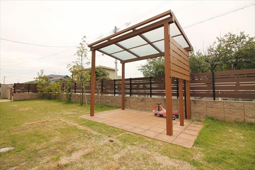 お子様の自転車を購入する為、サイクルポートのご相談を頂きました。広いお庭に設置するのにアルミの製品がぽつんと建つのはお庭が台無しになるので、デザイン性のあるナチュレでパーゴラのような空間をご提案しました。将来性を考えて、多目的につかえるスペースとして、駐輪場だけではなく、バーベキューや休憩所として多岐にわたって使っていただけると幸いです。