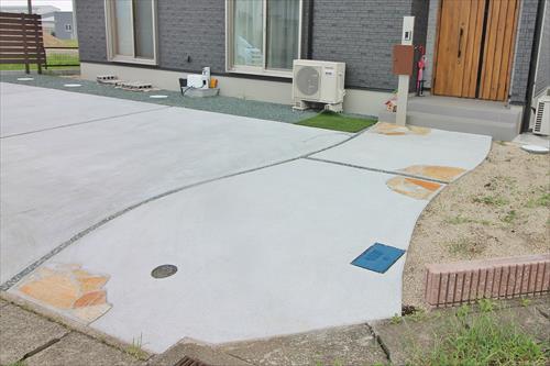 「車をしっかり停めたい」という大前提のもと、建物の前面にコンクリートを打ちました。無機質にならないよう、アプローチにはワンポイントで自然石を散りばめ、その脇には花壇スペースを作り、近い将来草花がアプローチに彩を添える予定です。「車がスムーズに停められることが一番嬉しい」と施主様。目隠しフェンスやお子さまの駐輪スペースなど、ご要望が形になり、毎日ストレスなく過ごしているそうです。