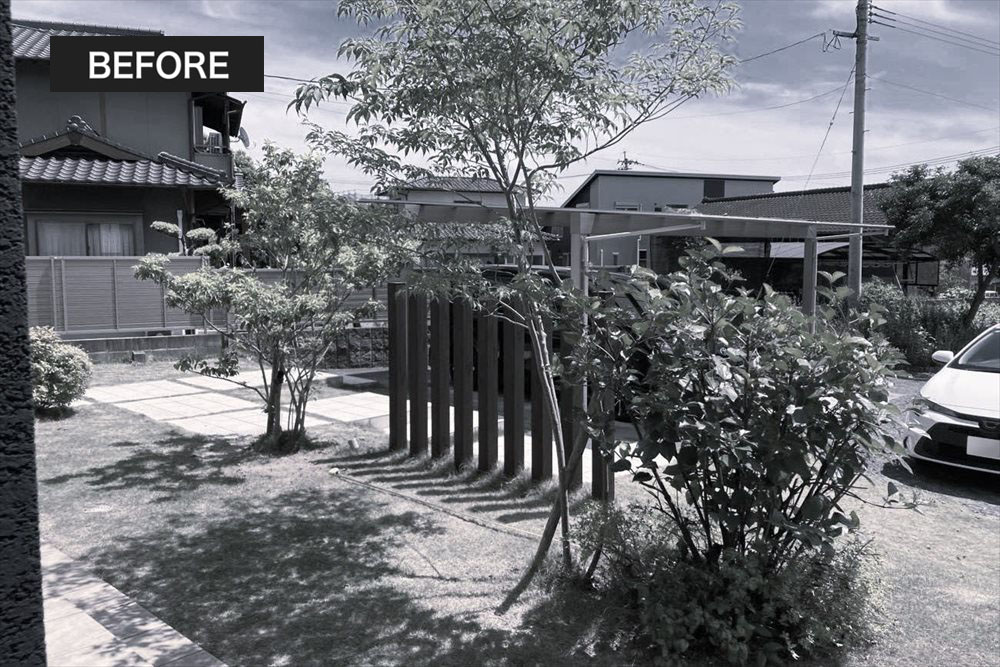 リビング前の軒空間が手狭だったことから「テラス空間をもっと有効活用したい」とご相談を頂き、軒を広げるイメージで『LIXIL:Gルーフ』を設置しました。元々あった柱はウォールに添え、既存の樹木と相成ってナチュラルで穏やかな空間へ…。ルーフの完成で外観のイメージも大きく変化し、実用性と美観性を兼ね備えた素敵なお庭が完成しました。