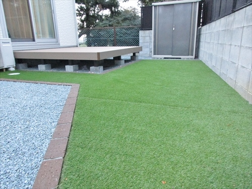 前回カーポート・植栽・角柱による目隠しをご依頼頂き、今回はお手入れが楽な子供さんと遊べるオシャレな庭に・・・という事で、まず植栽スペースと車庫スペースの仕切りとしてレンガを入れ、メリハリのあるお庭に。また導線となる部分にコンクリートの枕木を入れ、奥行感のあるアプローチに仕上げました。ウッドデッキは温もりのある木質化が魅力の人工木デッキを採用。人工芝と砂利スペースをレンガで仕切る事で一体感を保っています。「お庭らしくなった」と、とても喜んで頂きました。担当:アウトテリアプロデューサー 上島 康平