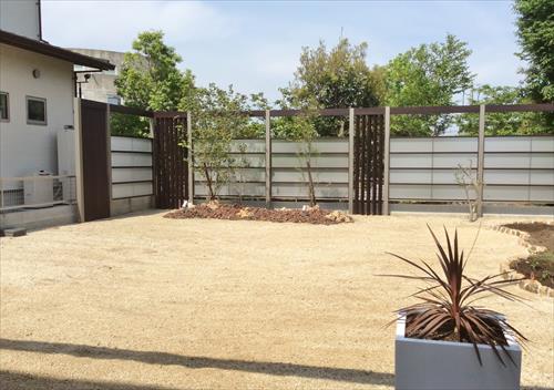2区画分の土地を購入して1年前にご新築されたK様。『ゆったりとくつろげる空間が欲しい』とのご要望から、リビング前には多用途に活用できる大きめの"Gルーフ・テラスタイプ"を設置。アクセントのインゴットが植栽を引き立てます。近隣からの視線も気になっていたので、"+G"のパネルと格子材を組み合わせ、建物外観に合った木調色で落ち着きのある圧迫感のない目隠しをご提案。広さを活かした、生活感を感じさせないスタイリッシュな空間を作りあげました。担当:アウトテリアプロデューサー 岡松 里香