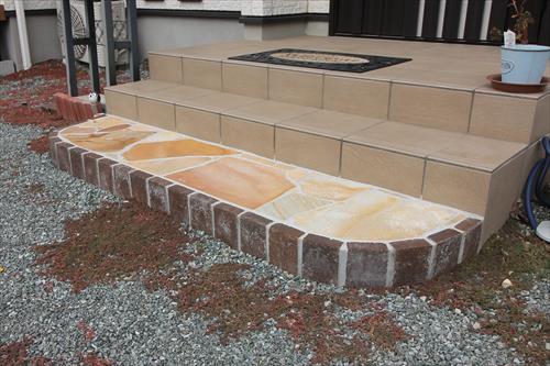 ご家族やお友達との寛ぎのスペースとして、デッキとテラスを設置しました。木調の暖かな風合いが建物と調和し、新たに設けた目隠しフェンスと統一感を持たせています。リビングの延長として広がるデッキは、屋根があることで天候を気にせずお使い頂けます。玄関先に1段追加したステップは、あえてレンガや石貼りでアクセントを加えました。敷地への乗り入れがしやすいよう進入口をコンクリートで整え、ご家族にとって使いやすいリフォーム工事となりました。