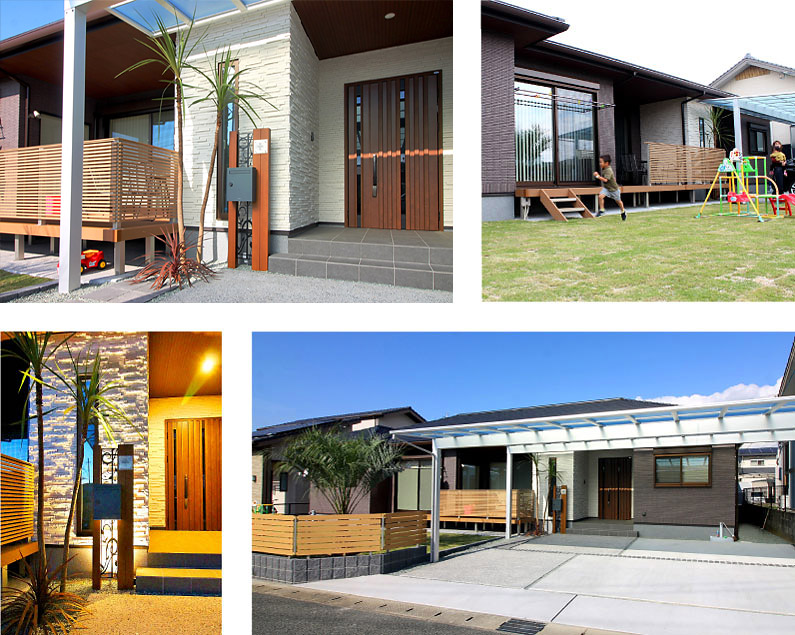 新生活が始まったばかりで、住まいもお庭もピカピカの杉野様邸。新居を構えるに当たりアウテリアタイガーを紹介したのは、ご主人のお父様でした。実家に加えて管理する物件の外構工事を以前から当社が担当。「担当者さんのお人柄はもちろん仕事も丁寧で、お任せしていたら間違いないという安心感と満足感がありました」というお父様の言葉が、後押しとなりました。最初から信頼していたため多くはお任せでしたが、広い駐車場&カーポート、そしてリビングから繋がる広いデッキはリクエストしました。「ゲストのことを考えると3台分のスペースを確保したかったし、子どもを連れての外出の時には乗り降りにも広い方が便利。またデッキがあるとキッチンから子どもたちの様子も見えて安心できます」。