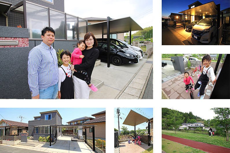 熊本県の北部に位置する豊かな自然に囲まれた玉東町。閑静な住宅街にある清水様のご自宅の前には広い緑地帯があり、初夏の風になぞられてシロツメグサの白い花が揺れています。一面に広がる緑のなかをのびのびと元気に遊ぶ子供たちの姿は、花から花へと飛び回る蝶々のようでした。