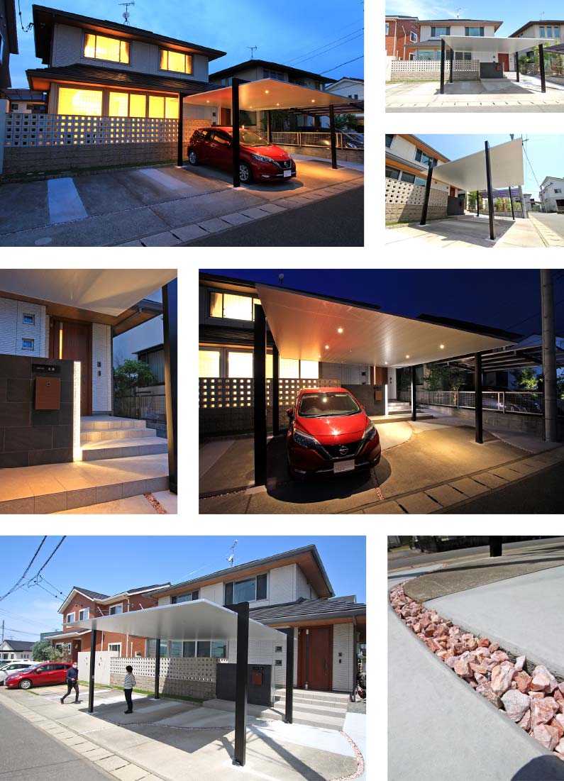 前回の工事では見送っていたカーポートですが、夏の暑さや雨の日の不便さなど、日々の暮らしのなかで必要性を痛感し設置を決意されました。選ばれたのは『LIXIL:カーポートSC』です。デザイン性に優れた大変人気のカーポートですが、高額な製品であるため、金額面で悩んでおられました。「なるべく価格を抑えたいという思いから、実はネット販売の会社と比較・検討していました。価格はかなりお安くなりましたが、所詮それだけ。工事やアフターフォローを考えると、気心知れたタイガーさんにお任せするのが間違いないと思いました」。出来栄えは…?「最高です!家の見栄えが大変良くなりましたし、車の乗り降りが楽になりました。外から眺めても良し、リビングから眺めても良し。メリット・デメリットを色々考えましたが快適さは想像以上です」。ダウンライトを取り入れたので夜には優しい光が灯り、門柱に添えたガラスマテリアル『インゴット』と相成って美しい光景が広がります。「夜がとっても綺麗です。ご近所からの評判も良くて“素敵ですね”とか“楽しませてもらっています”なんて声をかけて頂くんですよ」。思い切ってカーポートをつけて良かったねと、顔を見合わせて微笑むご夫妻。「私たちの要望を叶えてくれたデザイン力の素晴らしさと、担当さんの労力・提案力に心から感謝します」。ご夫妻の温かいお言葉と優しい笑顔が心に沁みました。大滝様のこれからの生活が、穏やかで快適であることを切に願います。