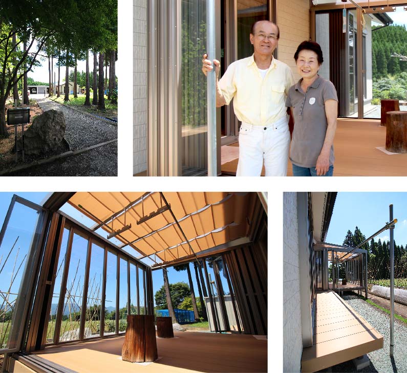 阿蘇カルデラの南部、阿蘇五岳と外輪山に挟まれた南郷谷に位置する南阿蘇村。庭先から外輪山を望み、緑のグラデーションに心癒される美しい景色が広がっています。奥様の療養を兼ねてこの地にやって来たのは2年前のことです。「見晴らしの良い場所を探してここに決めました。とにかく景色が最高!空気も良いし、周辺に家がないのでとても気楽です」と、金子様。「南阿蘇はとても気に入っています。山菜が豊富にあって取り放題(笑)。虫は多いし小動物も出るけれど、それ以上にリラックスして過ごせます。自然のなかの方が都会より断然いい。隣近所を気にして声をひそめる必要がないですからね」と笑います。「合志市、滋賀県、南阿蘇と引っ越しを重ねましたが、どの家にもガーデンルームをつけていたので今回もガーデンルームは必須でした。ただ予算に限りがあったのでタイガーさんともう1社見積りをお願いして、金額の安いタイガーさんに工事を依頼しました。お店に行った日はちょうどお休みでしたが、作業している職人さんに言づけたら次の日すぐに連絡が来て、とても対応が早かったです」。