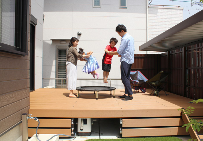 「庭があることで、子どもたちとの会話もはずみます。そういう時間が持てているのがとてもうれしいですね」と笑顔で語ってくださったご主人。前坂様のお庭は非常にシンプルですが、弊社の穴見と打ち合わせを重ね、細かいところにこだわったといいます。