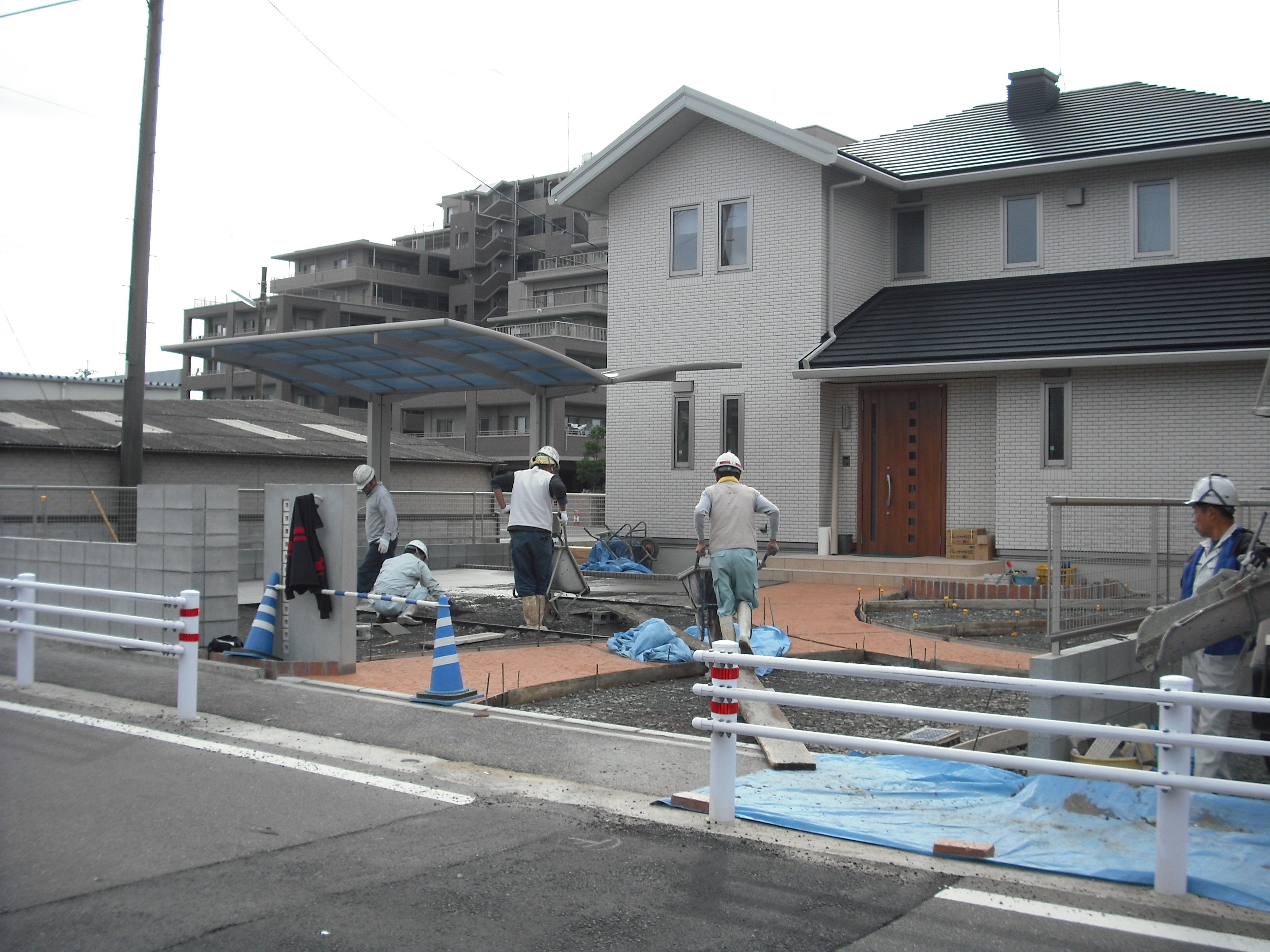熊本市の現場で、外構工事中です。前面道路は、交通量が多い為、建物前面は、車の切り替えしの為、コンクリート仕上げとなっていましたが、それだけでは、見た目に冷たい雰囲気になるので、