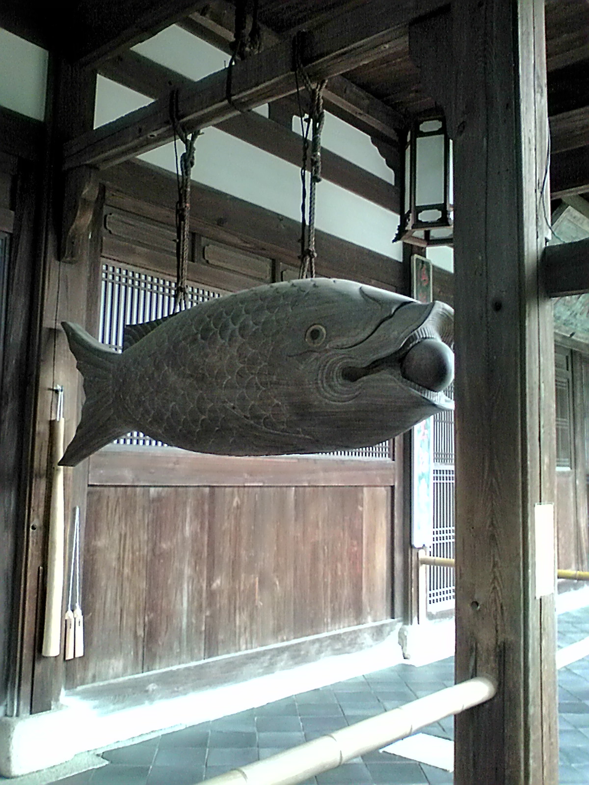 これはそのお寺にあった魚板(カイパン)といわれるものです(2m級)。