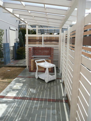 さらには日除けのオーニングに、自転車置き場を兼ねた屋根付きのパーゴラもあります。