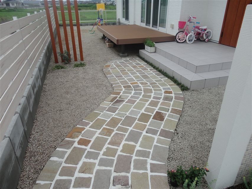 アプローチは自然石(方形)を使用しました。
