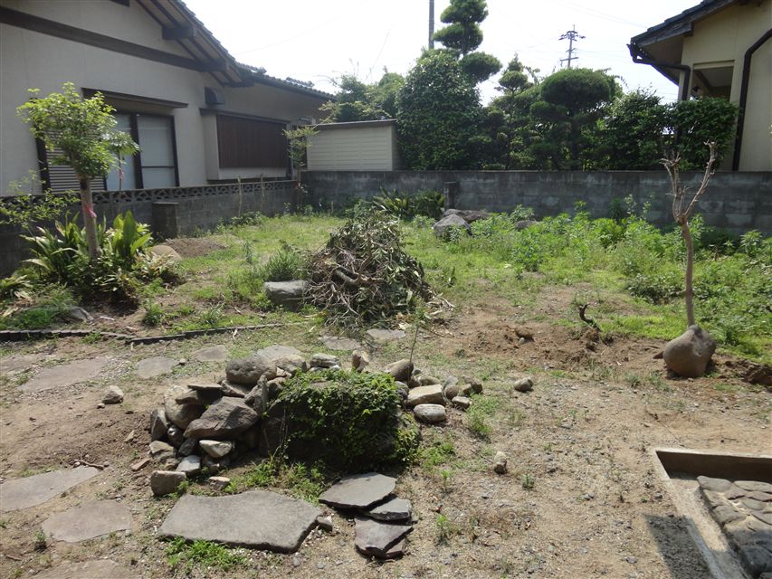 レンガ敷き、石貼り、砂利敷きなどで雑草対策をしました。