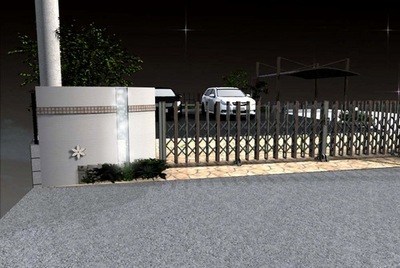 カーゲート LIXIL アルシャインⅡ Cタイプ を中心に両側に 袖壁 を設けました。
