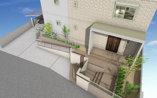 随分高低差があるので、通りに近い位置で門扉をご提案しました。