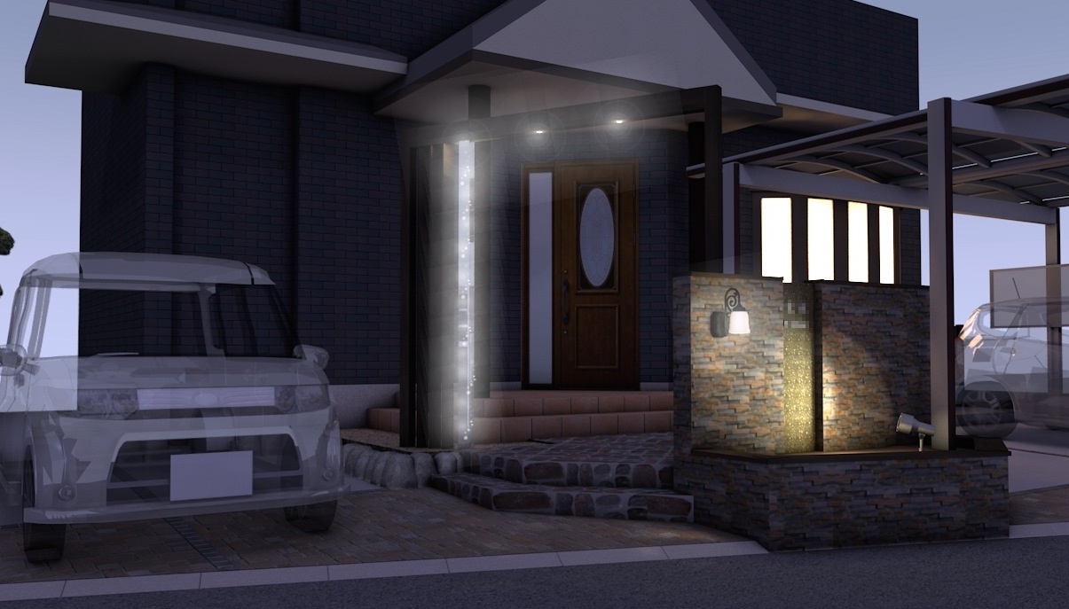 ライトアップさせ夜の雰囲気も楽しめる門廻りとなりました。