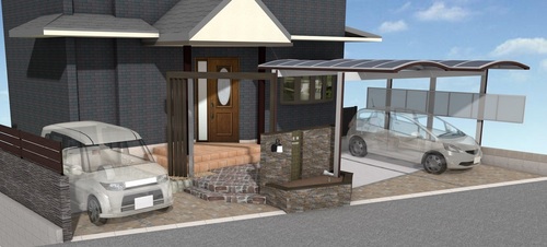 今回の外構リフォームで門袖の植栽部分が軽自動車がとめられる車庫となります。