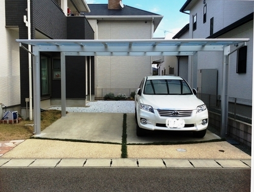 シンプルな外観にとても似合うスッキリとした2台分のカーポート