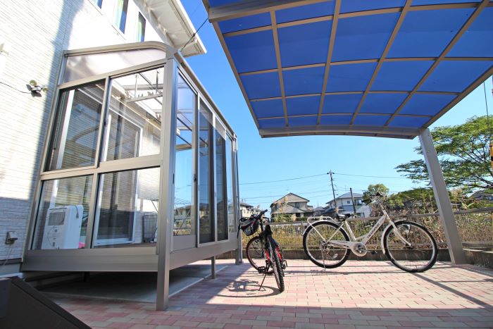 まず奥様が洗濯物を干すスペースにとサンルームをご希望されましたので、『YKK:ソラリア / テラス囲い』を設置させて頂きました。