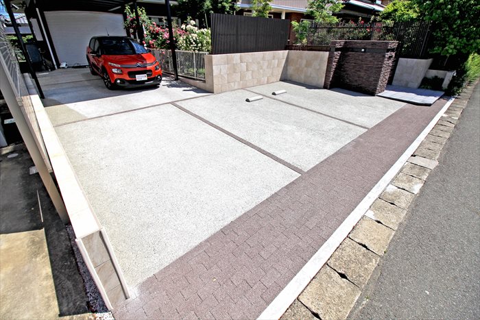 元々は解放感と使い勝手を重視した作りでしたが、今回はデザイン性に重きをおきました。門廻りに高さを作ることで閉鎖的にならないか心配でしたが、アイアン門扉がほどよい抜け感となっています。車が止めやすくなり、 エレガントな雰囲気に仕上がりました。