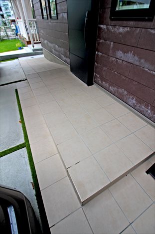長く伸びる玄関ポーチは片側はスロープ、反対側はステップになっていて、様々なお客様のニーズに対応します。