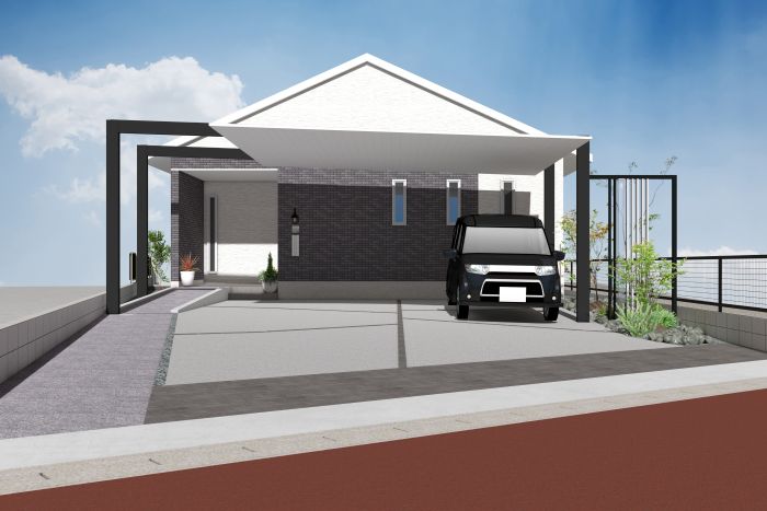 施主様からのご要望もあり『LIXIL:カーポートSC 延長梁タイプ』をメインとした敷地の形状を活かしたプランをご提案しました。