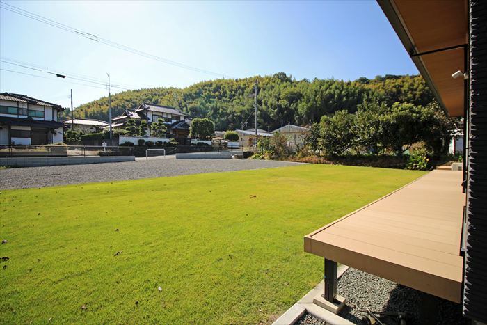 お庭はお子様が伸び伸びと過ごせるように天然芝を広く取り入れました。